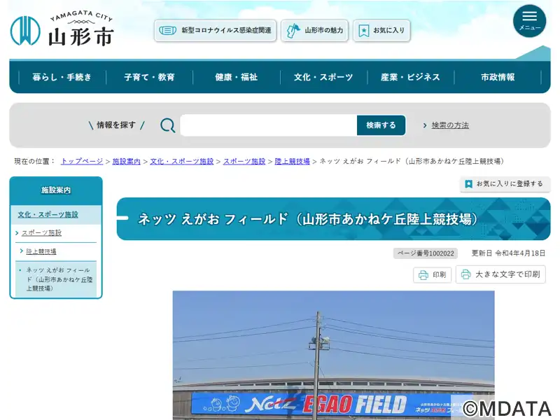 | 住所 | 山形市あかねケ丘2-4-1 あかねヶ丘陸上競技場 |