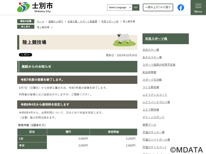 士別市陸上競技場