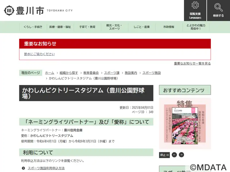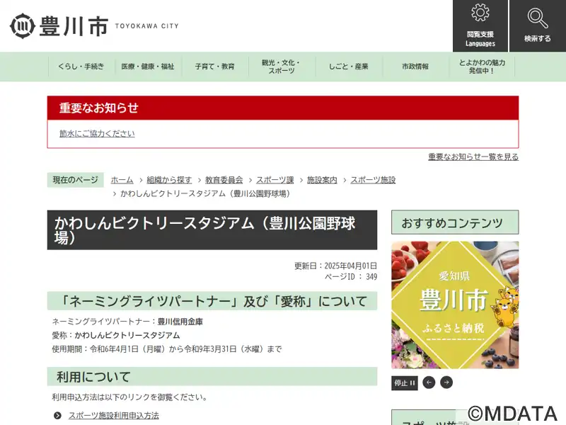 | 住所 | 豊川市諏訪1-79 豊川公園野球場 |