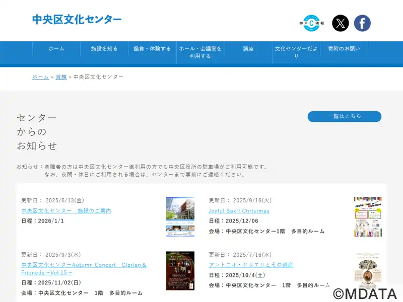 旧居留地内、市役所西側に2022年7月19日オープン。新中央区役所との合築施設で、3館(勤労会館・葺合⽂化センター・生田⽂化会館)の文化機能を移転・集約化した文化センター。1階にミニコンサートやイベントが行える定員264人の多目的ルーム(グランドピアノ付属)、9〜11階にスタジオ、音楽室、美術室、クッキングルーム、陶工芸室、会議室、和室など貸し施設を設け、多彩な講座を開講。三宮駅から徒歩6分。
