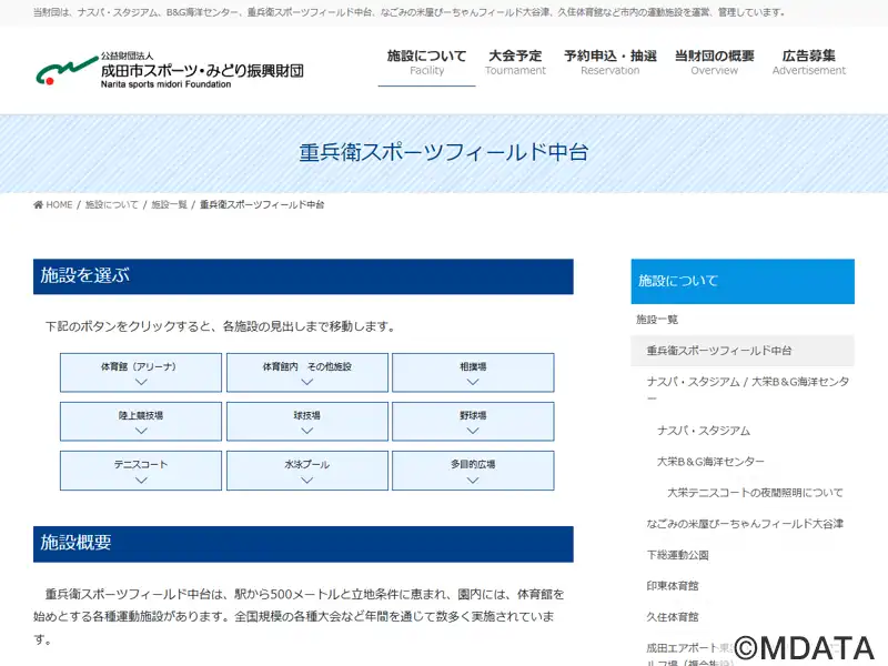 成田市の中核的スポーツ施設「中台運動公園」内に1984年3月竣工。全国規模の各種大会が開催できるアリーナはバスケットボール3面、バレーボール4面、バドミントン12面を確保。個人利用が可能な卓球室やトレーニング室、2階に柔道場、剣道場、会議室、3階に近的弓道場、アリーナ観客席外周に1周220mのランニングコースを設置。2022年10月より公園施設にネーミングライツ愛称導入。正式名、中台運動公園体育館