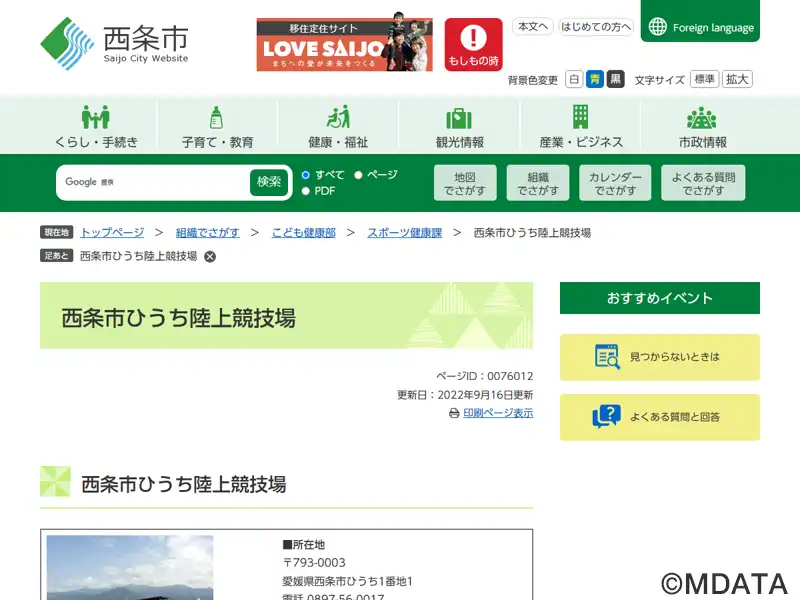 名称 | 西条市ひうち陸上競技場 |