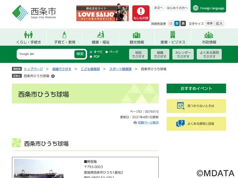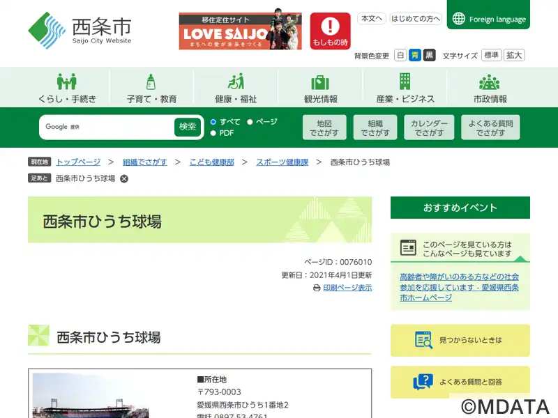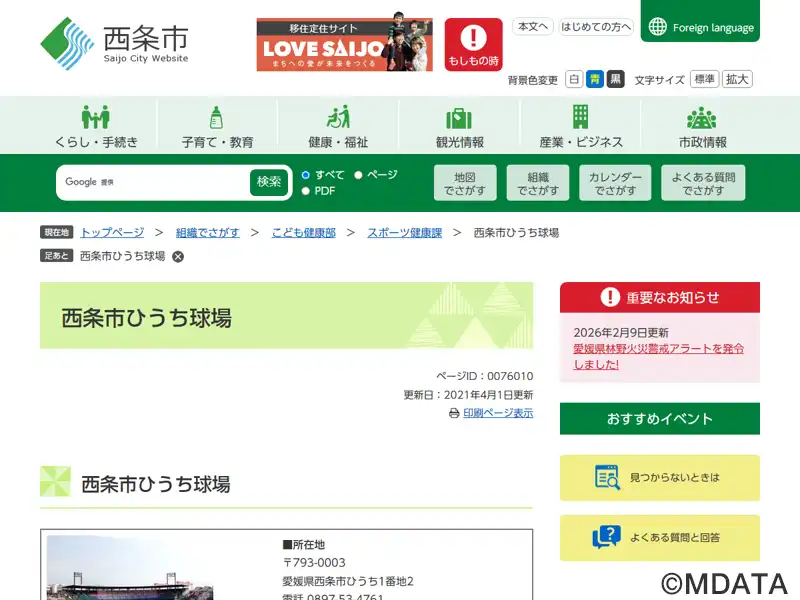 | 住所 | 西条市ひうち1-2 西条運動公園 |