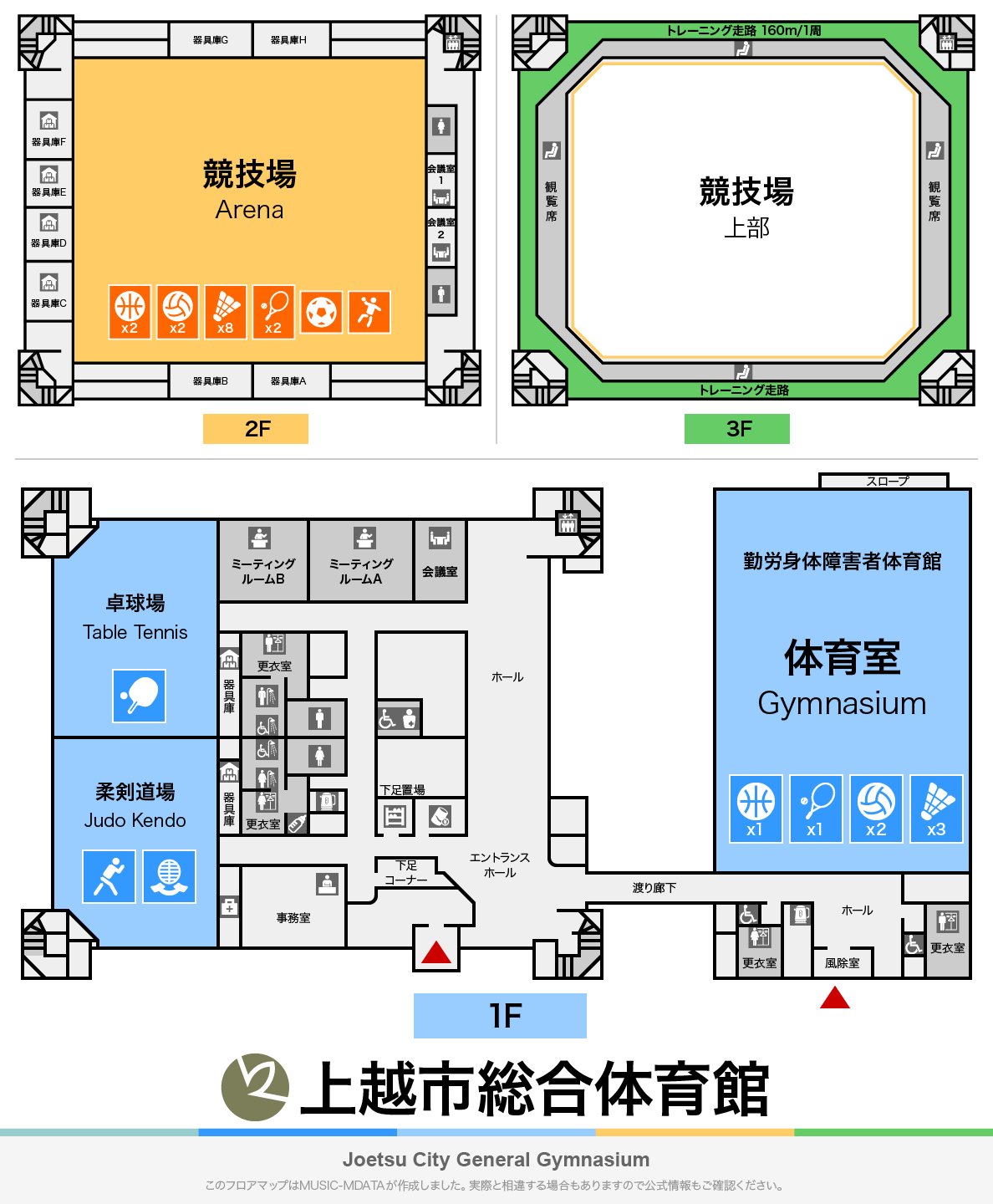 | 駐車場 | 78台(総合体育館)・14台(上越勤労身体障害者体育館) |
