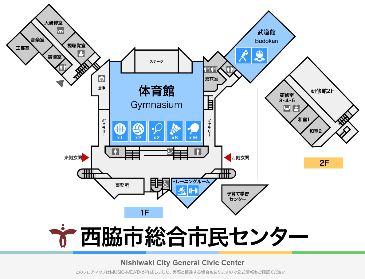 西脇市に1981年に開館した、体育館を中心に武道館や研修館を備えた文化・体育の拠点施設。体育館アリーナは、バスケットボール1面、バレーボール2面、バトミントン8面、卓球台16台が設置可能。屋内外兼用のステージ、約2,500人が収容可能な観覧席(固定席とロールバックスタンド、パイプ椅子)、トレーニングルーム、武道館、多目的利用が可能な大小の研修室、美術・音楽・工芸室、視聴覚室、和室を備えている。