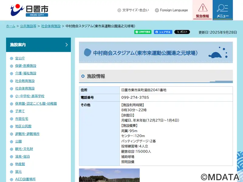 鹿児島県日置市東市来町に1958年に開場した野球場。2021年に改修リニューアルオープンした。両翼92m、センター118mの外野天然芝グラウンド、フルカラーLEDスコアボードや最大15,000人を収容できる観客エリアを備える。屋根付きブルペンなど練習施設も充実しており、大学や社会人野球チームのキャンプ地としても利用されている。2024年4月より、有限会社中村商会による命名権取得により現愛称となる。