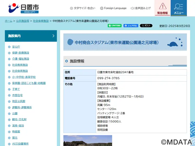 東市来運動公園湯之元球場(正式名) |
