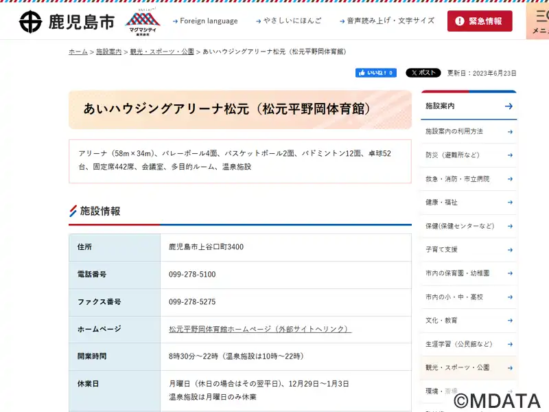 松元平野岡体育館(正式名) |