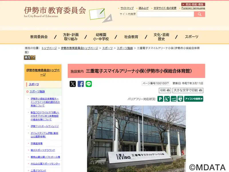 | 名称 | 三重電子スマイルアリーナ小俣 伊勢市小俣総合体育館(正式名) |