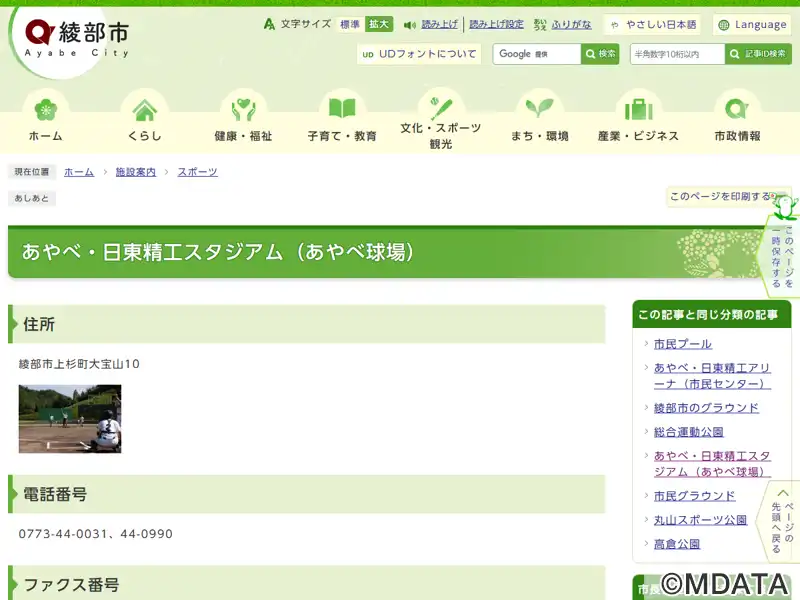 綾部市総合運動公園あやべ球場(正式名) |