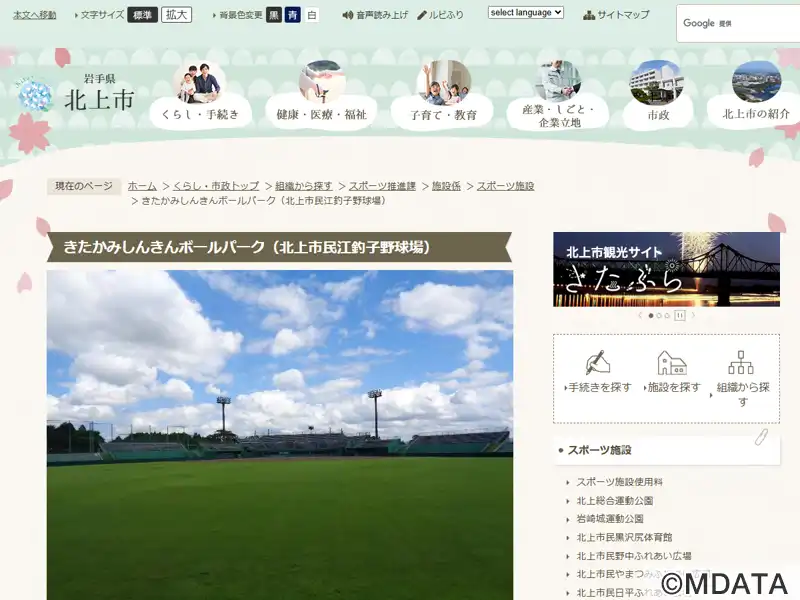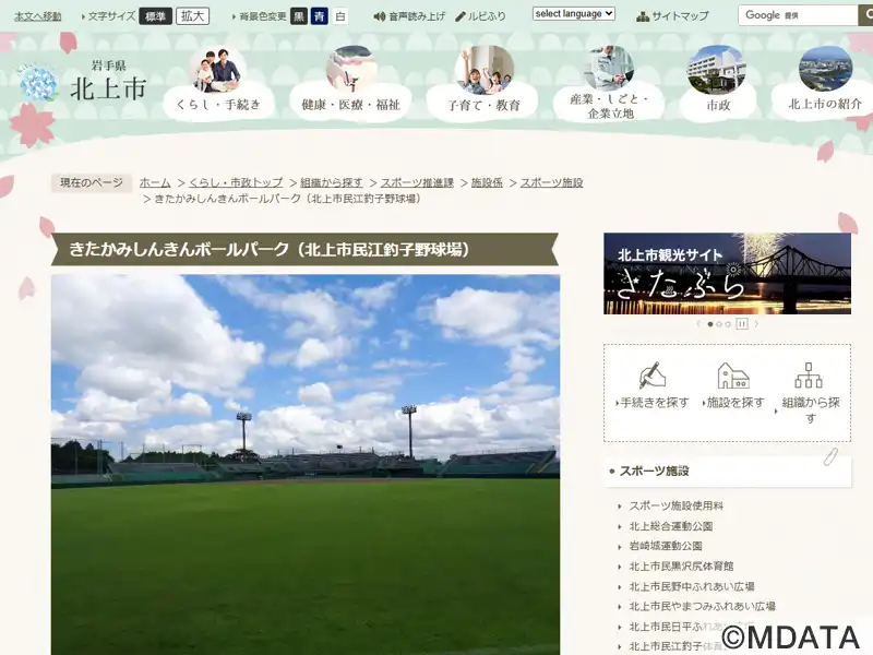 北上市民江釣子野球場(正式名) |