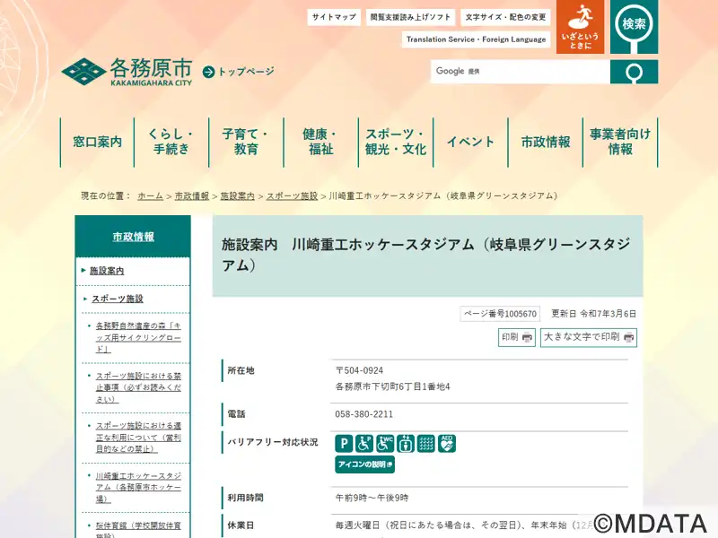 各務原市ホッケー場(正式名) |