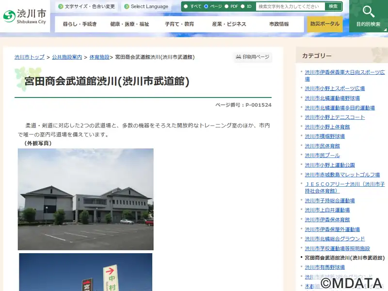 群馬県渋川市に1994年開館した総合武道施設。柔道・剣道に対応した2つの武道場、市内で唯一の室内弓道場、各種マシンをそろえたトレーニング室と4つの会議室を備えている。柔道場と剣道場にはそれぞれ80席の観客席があり、弓道場は近的9人立の射場が設置されている。地域のスポーツ振興の拠点として、健康増進や武道教育の場としても利用されている。2023年から、株式会社宮田商会の命名権取得により現愛称となる。