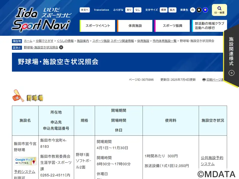 | 過去の名称 | 綿半飯田野球場 |