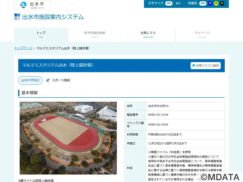 出水市総合運動公園陸上競技場(正式名) 出水市陸上競技場(別名) |
