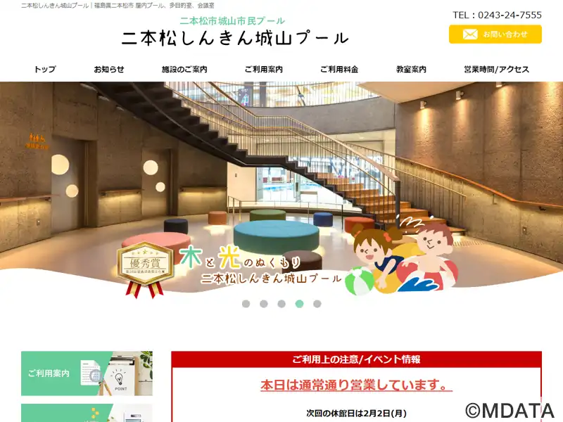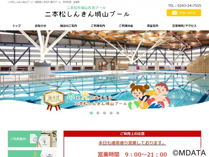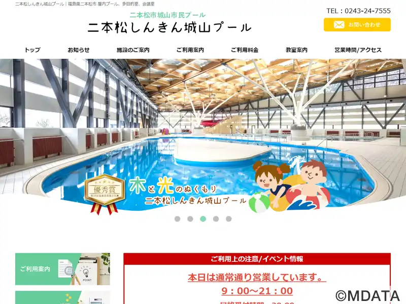 福島県二本松市に2016年に設置された屋内プール施設。二本松城跡の石垣や漆喰、瓦屋根を外観デザインに取り入れ、エントランスは開放感のあるガラス張り。木材を多用した温かみのある空間が特徴。25Mプール、ウォータースライダー、流れるプール、ジャグジーなどのプール施設と、多目的室、会議室があり、水泳教室やフィットネス教室も開催している。2022年から二本松信用金庫が命名権取得。正式名、城山市民プール。
