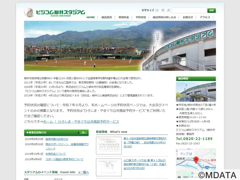 山口県柳井市の市営野球場で、1990年に建設された。両翼98m、センター122mの内野クレー舗装、外野天然芝のグラウンドと、8,000人収容可能な観客スタンドを備え、全国高校野球山口大会など、主に学生やアマチュアの試合に利用されている。2011年には「おいでませ!山口国体」の軟式高校野球競技の会場となった。2009年から、株式会社ビジコムが命名権取得により現愛称となる。正式名、柳井市民球場。