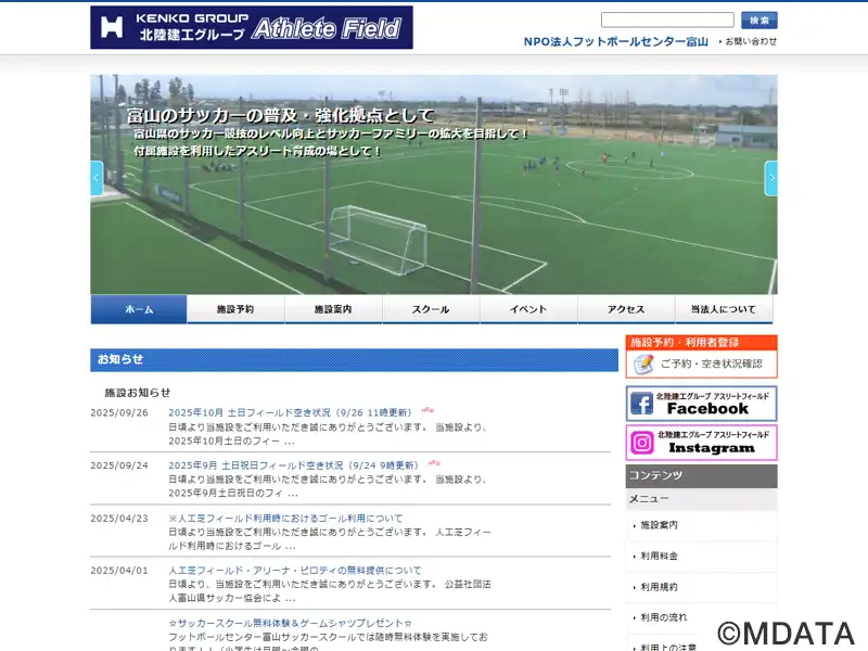 富山県滑川市の旧富山県立海洋高等学校の跡地を活用して2013年に開設されたスポーツ複合施設。FIFA規格の人工芝サッカーフィールドが2面あり、1面はJFA公認。LED照明とクラブハウスを完備する。また、アリーナとトレーニングルーム、人工芝の屋内練習場、セミナーハウスにレスリング場、セミナールームとクッキングルームがある。2023年から北陸建工グループが命名権取得。正式名、フットボールセンター富山。