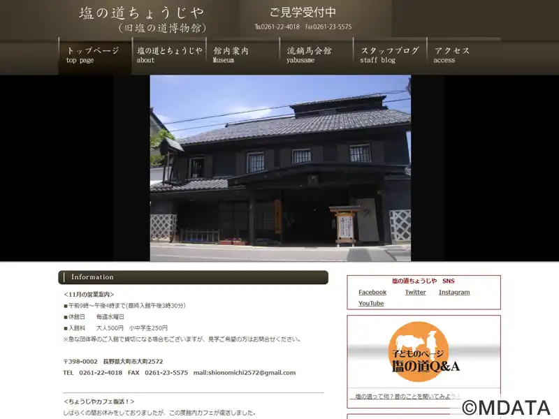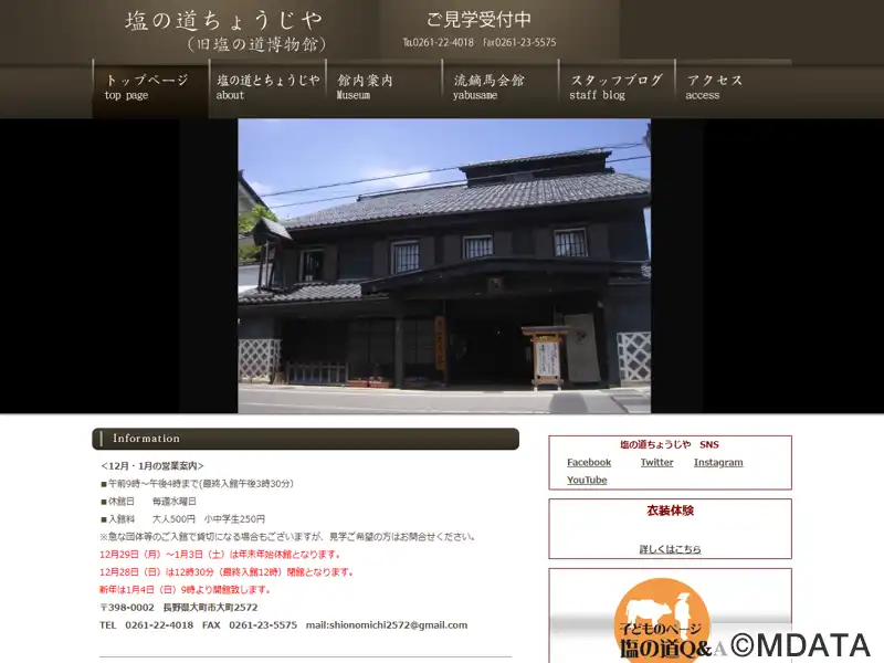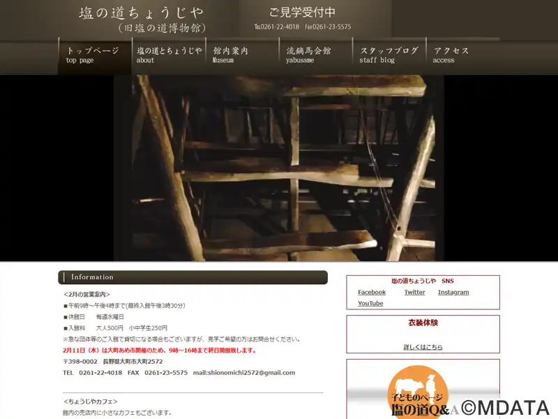 長野県大町市八日町にある国登録有形文化財で、千国街道(通称「塩の道」)の歴史を伝える施設。旧平林家住宅。明治23年築の母屋、文庫蔵、塩蔵、漬物蔵が建ち並び、見事な梁組をもつ母屋の2階では、千国街道に関する資料や道具を展示している。塩蔵には「にがりだめ」の仕組みが当時のまま残っており貴重なものとなっている。併設の流鏑馬会館では、大町の夏祭りで行われる子ども流鏑馬に関する衣装や資料を見ることができる。