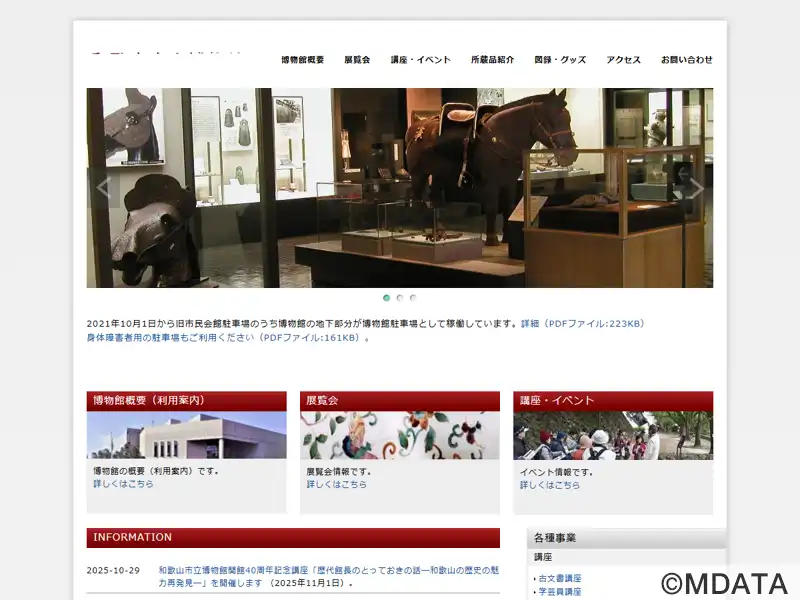 和歌山城築城400周年を記念して1985年に開館した歴史博物館。常設展示は、「資料が語る和歌山の歴史」をテーマに、原始時代から戦後復興期までの和歌山の歩みを6部門に分けて紹介している。2か月ごとにテーマを決めて資料を紹介するコーナー展示や、紀州徳川家コーナーも設置されている。また、特別展・企画展、講座や体験学習、史跡散策など教育普及活動も展開し、和歌山の歴史と文化を楽しく学べる機会を提供している。