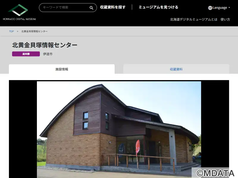 北海道伊達市にある、縄文前期・中期の集落遺跡「北黄金貝塚」の出土品を展示・解説するガイダンス施設。発掘された土器や石器、装飾品、クジラの骨を使った祭祀具、すり石などが展示され、貝層や墓の様子を実物大で再現している。縄文時代の生活、貝塚や水場での祭祀・儀礼、漁労を中心とした生業を物語る貴重な資料を公開。併設する史跡公園では竪穴住居や墓跡が復元され、遺跡見学と体験学習を通じて、縄文文化を体感できる。