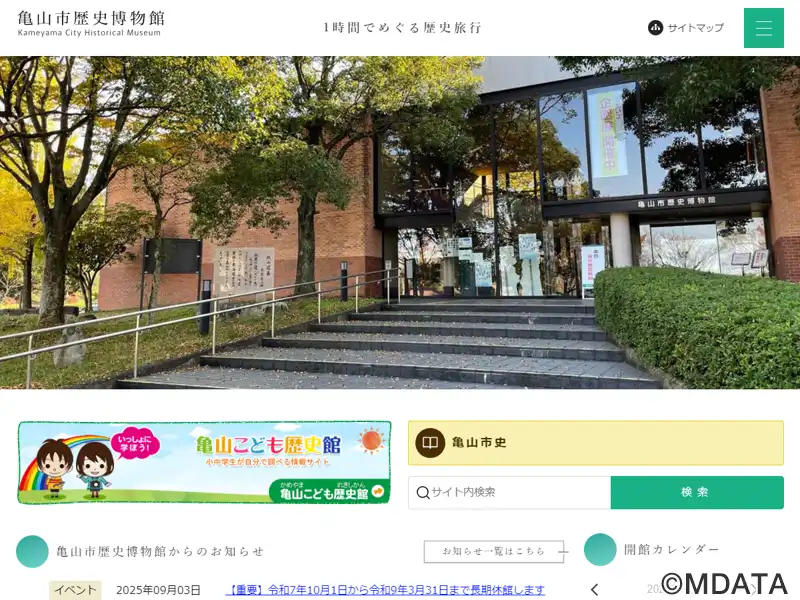 三重県亀山市に1994年に開館した歴史博物館。常設展示では、地域の文化遺産である「モノとの対話」をテーマに、東日本と西日本の文化交流の中で育まれた亀山市の歴史を、時代を追って紹介している。なかでも、江戸時代の亀山城絵図を元に制作された亀山城・亀山宿の復元模型や、古文書、鎧、刀など亀山藩主ゆかりの遺品が見どころ。また、企画展示や講座が開催され、郷土の歴史を身近に感じ、学びと発見の場を提供している。