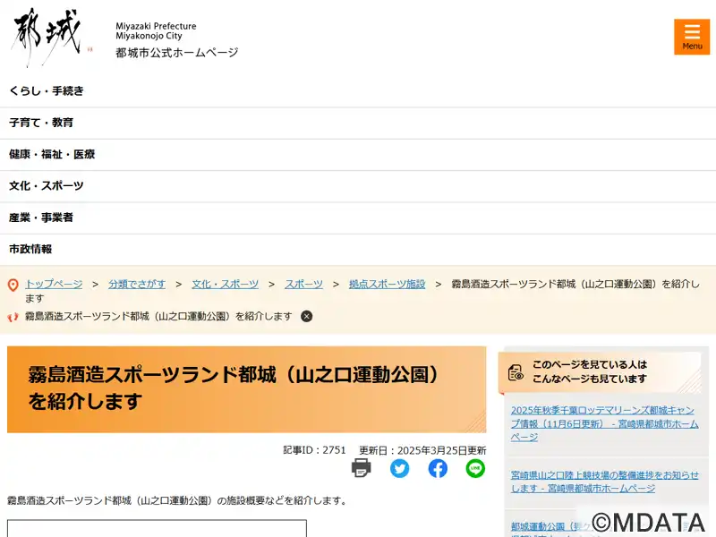宮崎県山之口陸上競技場(正式名) KUROKIRI STADIUM(別名) |