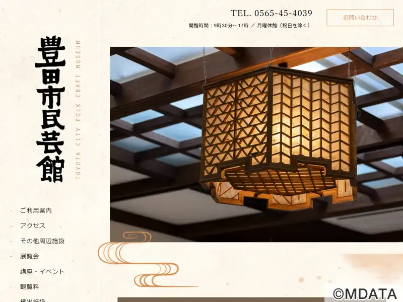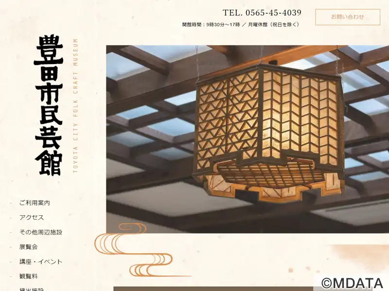 豊田市の猿投山を望む矢作川沿い、平戸橋公園内にある公立の民芸館。1983年、民藝運動の創始者・柳宗悦ゆかりの日本民藝館(東京)より旧大広間と元館長室を譲り受けて移築・開館した第1民芸館、その後開設された第2・第3民芸館と茶室がある。日常の暮らしに宿る美しさを伝える場として、民芸美が鑑賞できる多彩な展覧会を開催している。また、挙母木綿や穴窯陶など、地域の手仕事によるものづくり講座を開催している。