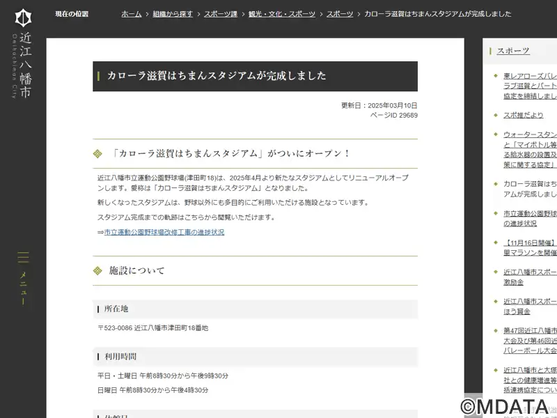 | 住所 | 近江八幡市津田町18 近江八幡市立運動公園 |