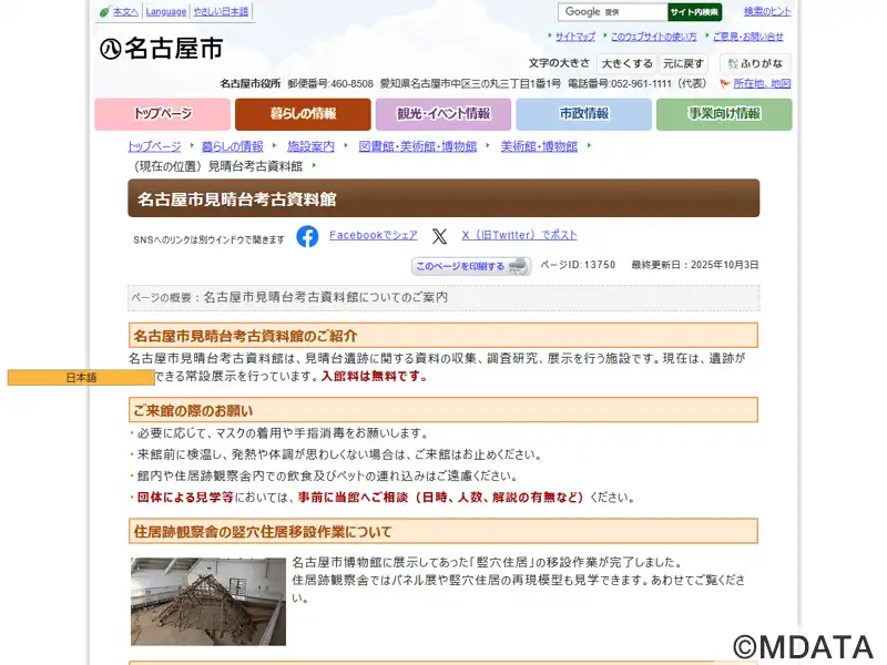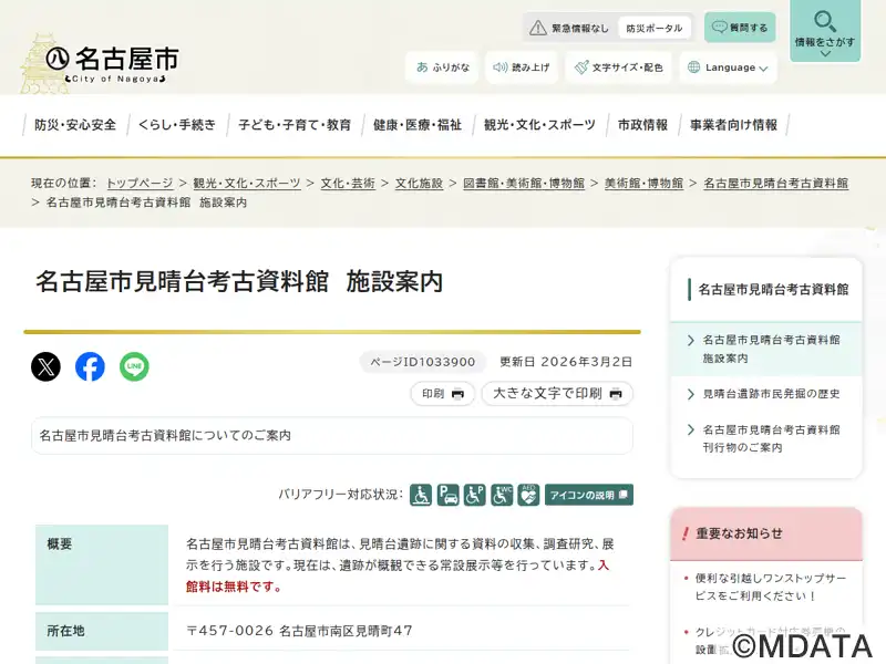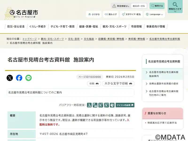 愛知県名古屋市南区の笠寺公園内に1979年に開館した、弥生時代の集落である見晴台遺跡に関する資料の収集、調査研究、展示を行う遺跡博物館。市民参加の発掘調査が行われ、遺跡から出土した土器や石器を常設展示で紹介。市内の遺跡資料のほか、太平洋戦争中の高射砲陣地に関連する資料も展示されている。住居跡観察舎では名古屋市博物館に展示されていた「竪穴住居」が移設され、パネル展や竪穴住居の再現模型も見学できる。