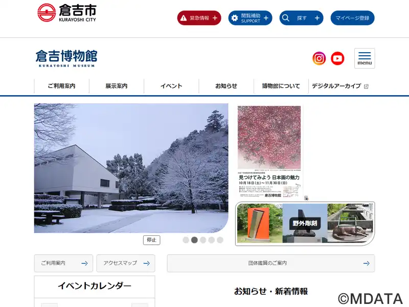 倉吉市のシンボル・打吹山のふもと、打吹公園椿乃平の東側に1974年に開館した博物館。隣接する歴史民俗資料館と一体的に運営され、倉吉市の美術、歴史・考古、民俗に関する資料を収蔵・展示している。博物館の展示は美術部門と歴史部門からなり、洋画家の前田寛治、日本画家の菅楯彦をはじめ郷土ゆかりの作家の作品を中心に紹介。公募展も主催する。また、倉吉の遺跡から出土した国重要文化財を含む考古資料を展示している。