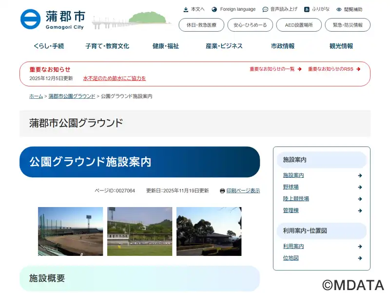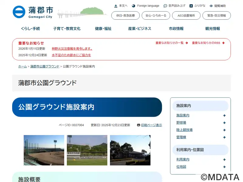 | 名称 | 蒲郡市公園グラウンド野球場 |