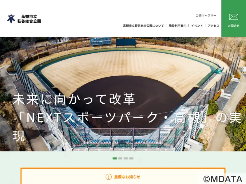大阪府高槻市の萩谷総合公園内に2002年開場した、硬式野球対応の野球場。両翼98m、センター122m、内野の黒土と外野の天然芝のコントラストが特徴。観客席は約1,330人収容可能で、磁気反転式スコアボードや、高さ16mの防球ネットを完備。プロ野球ウエスタン・リーグ公式戦、大学野球や高校野球の予選大会なども開催される。周囲には豊かな自然が広がり、サッカー場やテニスコート、わんぱく広場などを併設する。