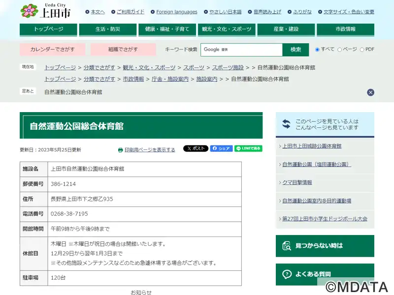 長野県上田市に1981年に開館した市民体育館。2021年の大規模改修により冷暖房設備やLED照明などが導入された。アリーナは、バスケットコート2面、バドミントンコート8面、バレーボールコート3面、フットサルコート2面が配置可能で、Vリーグ・信州ブリリアントアリーズの公式戦も開催される。アリーナと多目的運動室には国際規格のクッションフロアを採用し、競技者にとって安全かつ快適な環境を提供している。