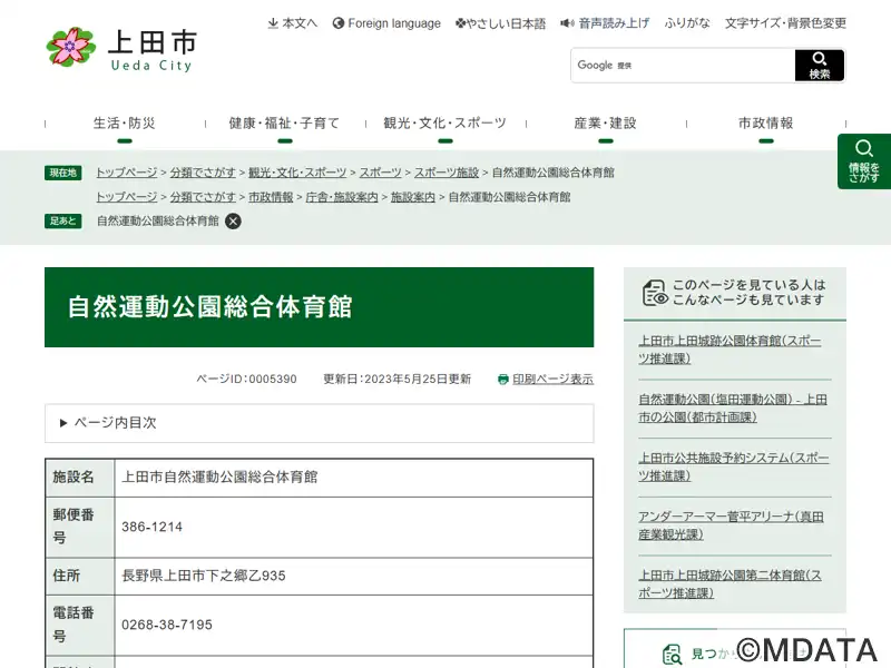 | 名称 | 上田市自然運動公園総合体育館 |