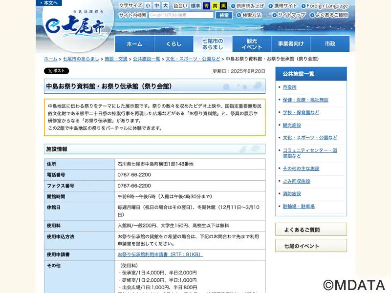 名称 | 七尾市中島お祭り資料館・お祭り伝承館