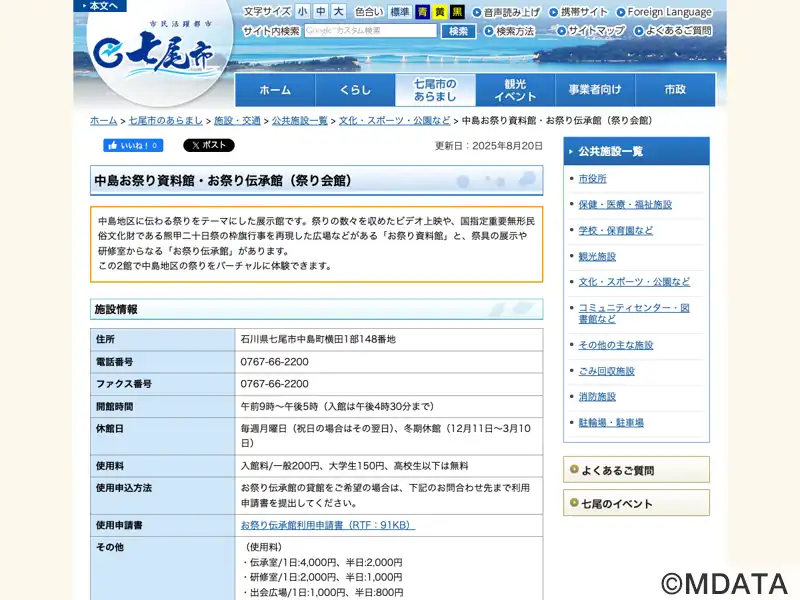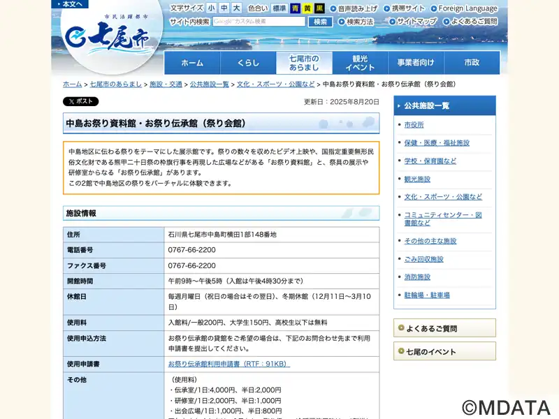 | 名称 | 七尾市中島お祭り資料館・お祭り伝承館