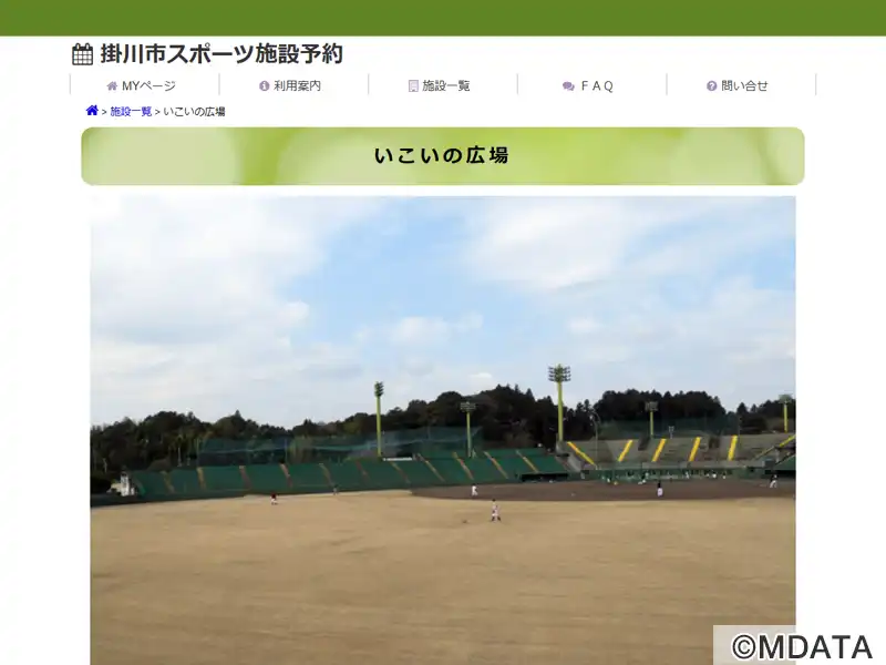 静岡県掛川市の「いこいの広場」にある市営野球場。通称、掛球。両翼92m、中堅120mの外野天然芝グラウンドに、パネル式スコアボード、最大約12,000人収容できる観客スタンドを備え、硬式野球にも対応。全国高校野球の地区大会や、JDリーグの公式戦も開催される。周囲は自然に恵まれた開放的な環境ながら、天竜浜名湖鉄道「いこいの広場駅」から徒歩5分とアクセスも良好で、地域のスポーツ活動の拠点となっている。