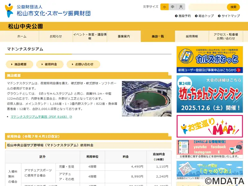 | キャパ・定員 | 2,000人(メインスタンド1,166席・1・3塁内野スタンド822席・身障者席12席) |