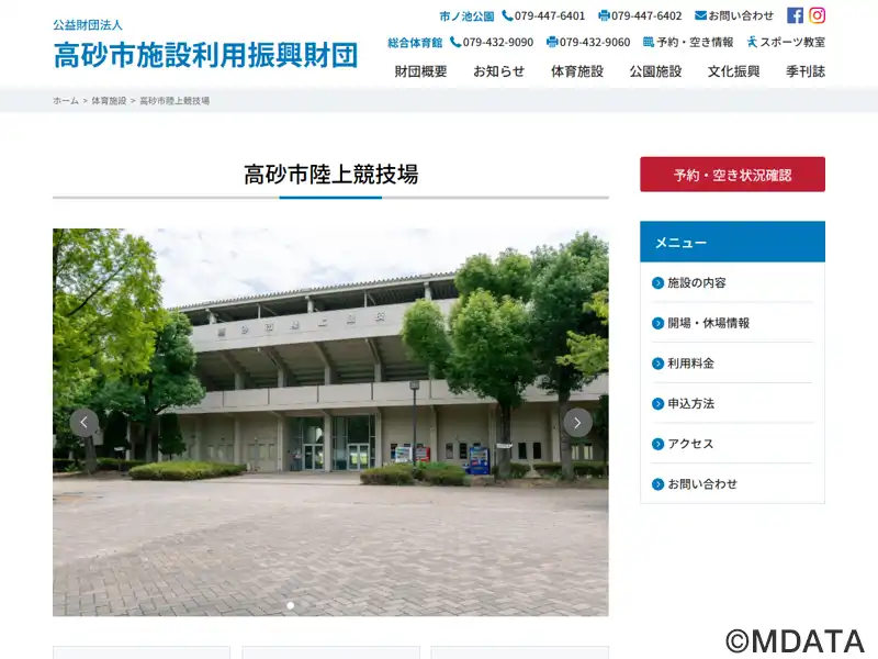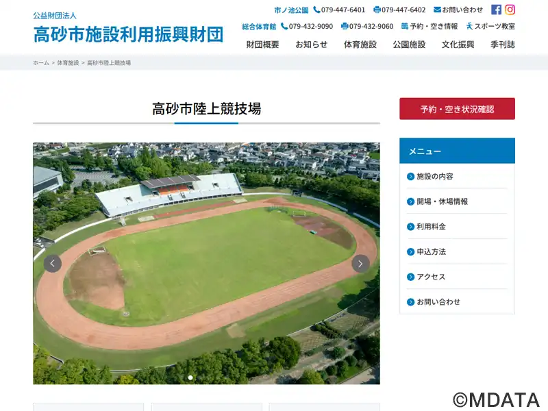 兵庫県高砂市総合運動公園内にある陸上競技場。1971年開場。全天候型400mトラック8レーンと100m直走路を備え、走幅跳、三段跳、走高跳、砲丸投、円盤投、やり投などのフィールド競技にも対応。インフィールドは天然芝で、関西サッカーリーグの公式戦も開催される。観客席はメインスタンドに3,200人、芝生エリア20,000人を収容可能。地域の陸上競技大会や運動会、各種スポーツイベントに利用されている。
