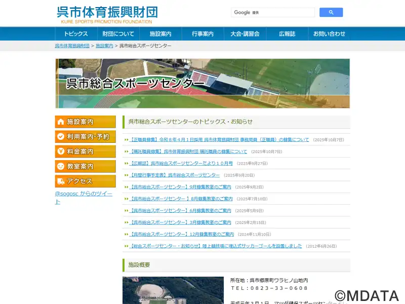 広島県呉市郷原にある陸上競技場。1989年に「マツダ健保スポーツセンター」として開業、2005年に呉市の施設となる。日本陸連第3種公認の全天候型400m×8レーンのトラックと天然芝フィールド、夜間照明、観客スタンドを完備し、各種大会や地域サッカーリーグの公式戦も開催される。なお、2023年11月に産業団地として民間へ売却。25年4月から一定期間スポーツ施設として借り受け、2028年4月新施設に移転予定。