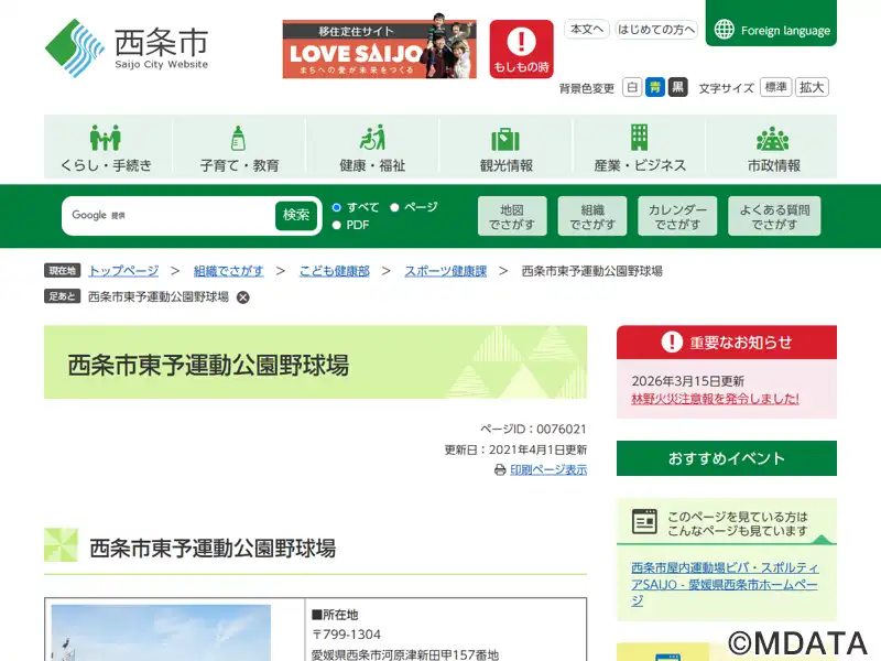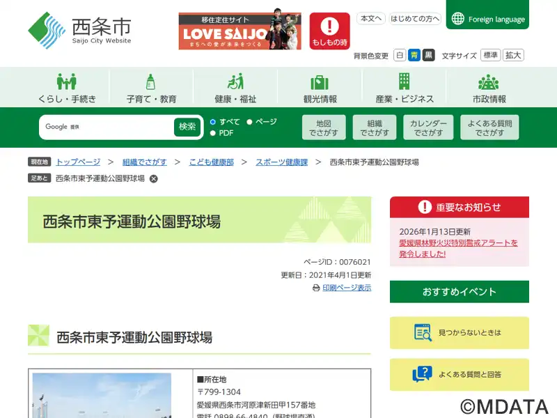 | 名称 | 西条市東予運動公園野球場 |