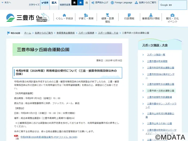 三豊市緑ヶ丘総合運動公園