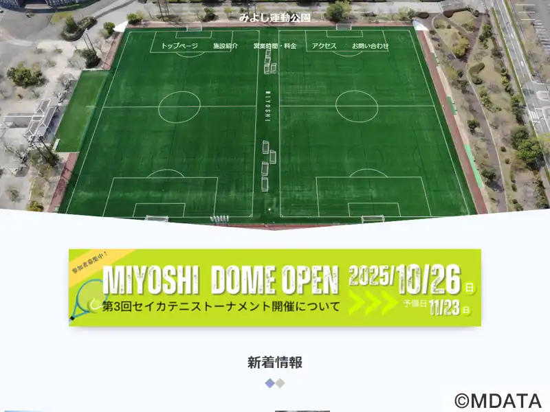 広島県三次市みよし運動公園内にある陸上競技場。日本陸連第2種公認の天候型トラック400m×8レーンに、夜間照明、電光掲示板、最大収容約10,000人のスタンドを備える。インフィールドは天然芝で、学生やアマチュアのトレーニングや記録会、地域のスポーツ大会、サッカーやグラウンド・ゴルフなど多目的に活用可能。園内には野球場、テニスコート、運動広場、スケートパーク、遊具エリア「みよしあそびの王国」を併設。