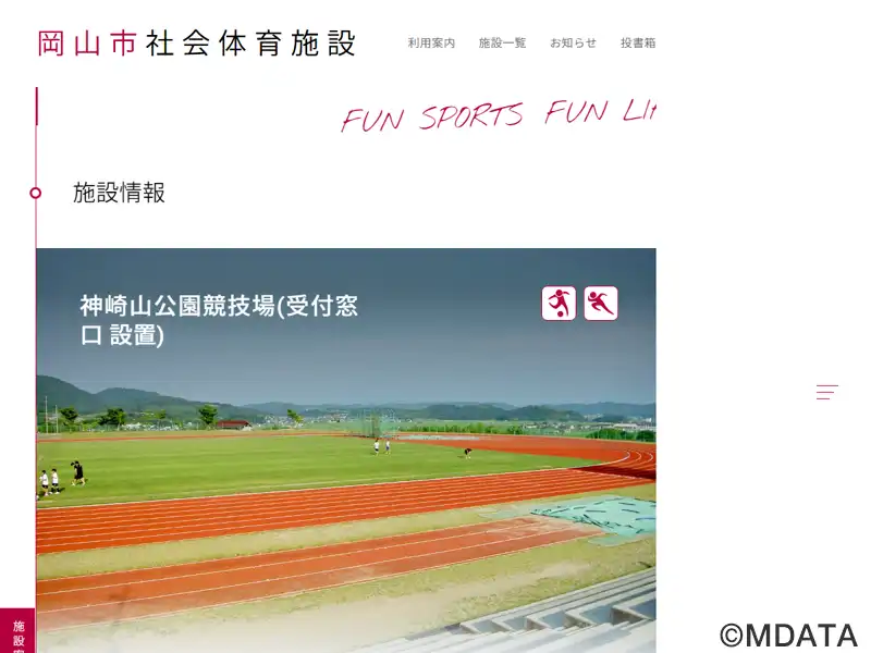 岡山県岡山市の神崎山公園内に、1999年に開場した陸上競技場兼サッカー場。2022年に大規模改修が行われ、日本陸連第3種公認の全天候型400m×8レーンのトラックに一新、安全性と競技環境の向上が図られた。また、天然芝のインフィールドはタッチライン105m、ゴールライン68mで、様々なトラック&フィールド種目の記録会、競技会、学生やアマチュアのサッカー大会、中国サッカーリーグの公式戦も開催される。