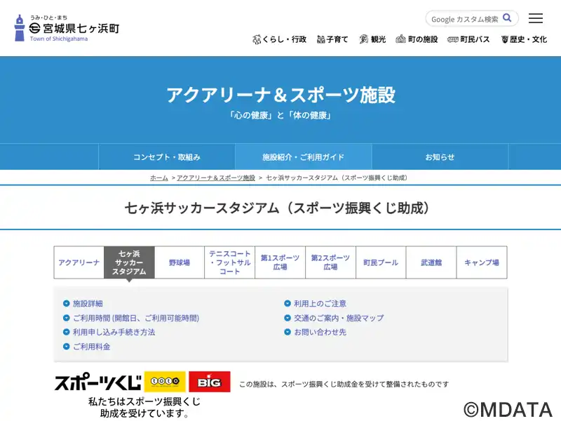 宮城県七ヶ浜町に1998年に開場したサッカー専用球技場。2017年に、JFA公認ロングパイル人工芝のフィールドへ全面改修した。一般用1面または小学生用2面での利用が可能。観客席はメインスタンド970席と芝生バックスタンドを合わせて2,342席。本部室や放送室、会議室、審判室、選手控室(シャワー付き)などの設備も整う。国体やインターハイ開催の実績があり、地域リーグの公式試合や各種大会に対応している。