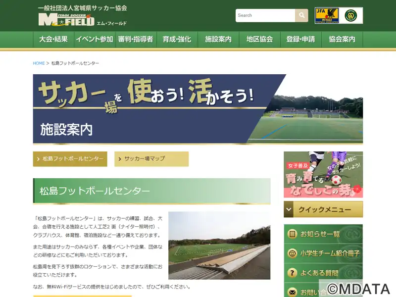 宮城県松島町の豊かな自然に囲まれたサッカーを中心としたスポーツセンター。JFA公認の高品質な人工芝サッカーグラウンド2面(ピッチ1・2)とナイター設備、宿泊施設、フットサルなど多目的に利用できる体育館、クラブハウスを完備し、サッカーの練習や大会、合宿、各種研修など幅広く利用されている。また、ピッチ1には観客席を備え、クラブハウスにロッカー・シャワー室、審判室があり、地域リーグの公式戦も行われる。