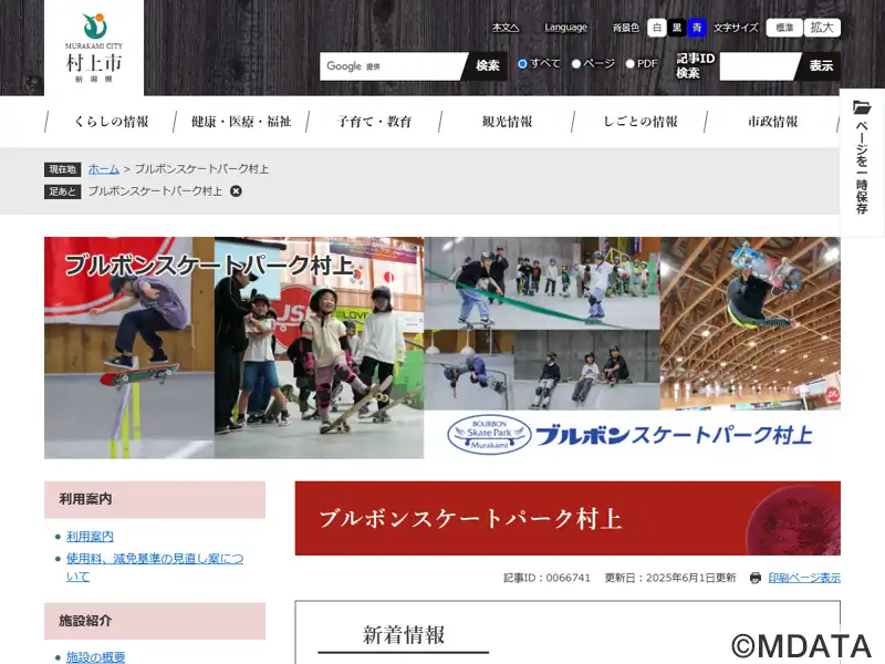 新潟県村上市に2019年開場した屋内型スケートボード施設。アリーナには世界大会の設計を手がけるカリフォルニアスケートパーク社監修による2つの本格的なコースを設置。「パーク」はおわん型の立体的な構造で、最大3メートルの高低差を活かした空中演技が可能。「ストリート」は階段や手すりなど街中をイメージした構成で、様々なレベルの競技者に対応。また、ボルダリング、スラックラインやランニングコースも完備する。