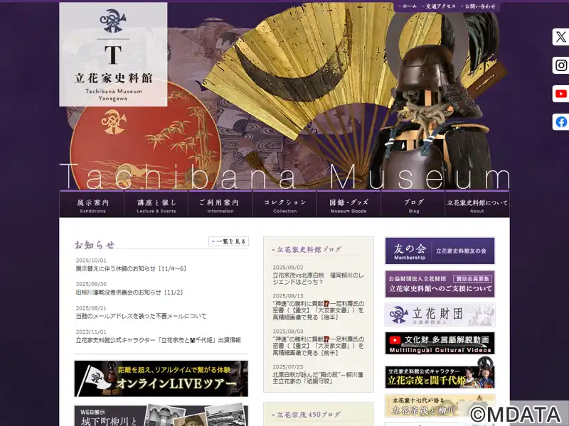 福岡県柳川市に位置する国指定名勝「立花氏庭園」内にある歴史資料館。江戸時代に柳川藩を治めた大名立花家に伝わる名宝や、近代伯爵家資料を展示公開している。国宝・重要文化財を含む約5千点の美術工芸品、近世大名道具を所蔵し、歴代藩主の甲冑武具、茶道具、能道具、書画などの優品を紹介する平常展示と、季節ごとにテーマを設定した特集展示があり、藩祖立花宗茂以来、受け継がれてきた貴重な史料・文化財を公開している。