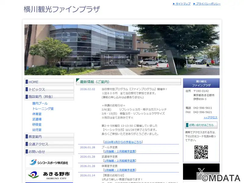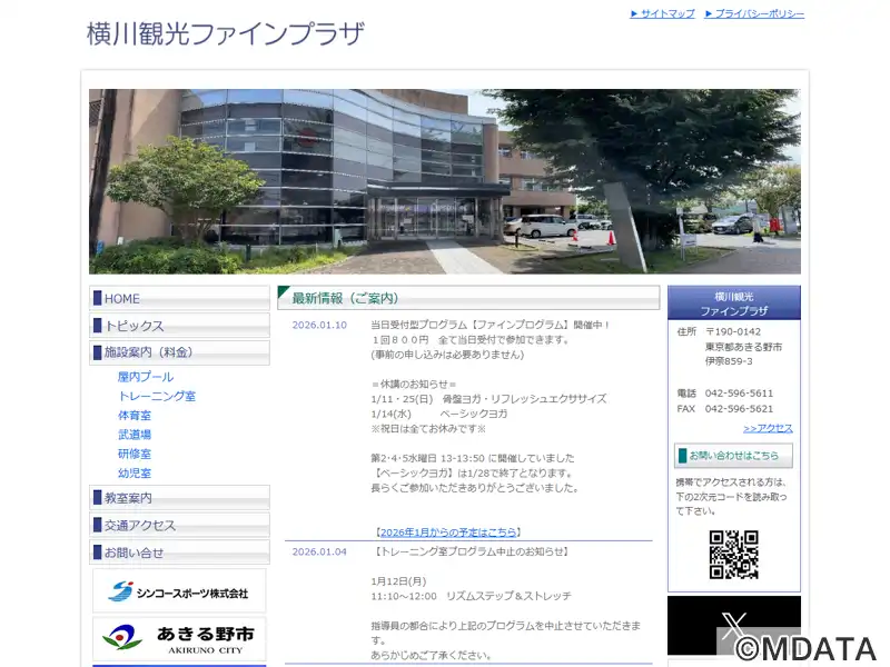 東京都あきる野市におけるスポーツ、レクリエーション、地域交流の拠点として、1991年に開館したスポーツ複合施設。25m×6コースの室内温水プールや、フィットネスマシンを備えたトレーニング室、バドミントンコート6面を設置できる体育室、畳・板張りあわせて168畳分の武道場を備える。さらに、研修室や幼児室もあり、様々なスポーツプログラムを開催している。2025年4月から横川観光株式会社が命名権を取得。
